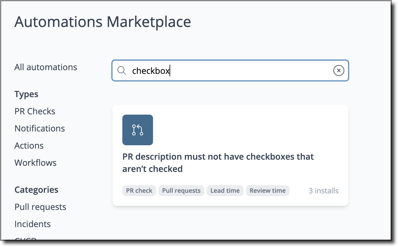 The Automations Marketplace is categorized into 4 main "types" of automations: